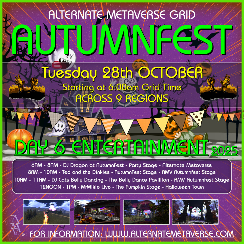 DJ Dragon at AutumnFest @Party Stage~Alternate Metaversein 16 hours | 2025-10-28 07:00 SLT | Alternate Metaverse | Added by Cataplexia Numbers✦Join us for an unforgettable session at the New Landing Point in Alternate Metaverse Grid!