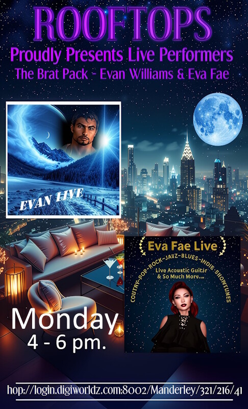 Monday night at Rooftops!in 1 hours | 2025-10-27 16:00 SLT | Manderley | Added by Craig DenimoreTonight at Rooftops the Bratpak returns! Eva Fae sings for us in her incomparable style. Then Evan Williams brings his gritty singing to the table. 4 - 6 pm.