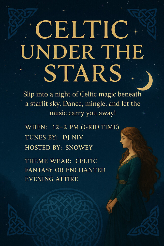 Theme: Celtic fantasy or enchanted evening attire—think flowing gowns, kilts, or anything with a touch of starlit mystique.(Dress-up Optional)