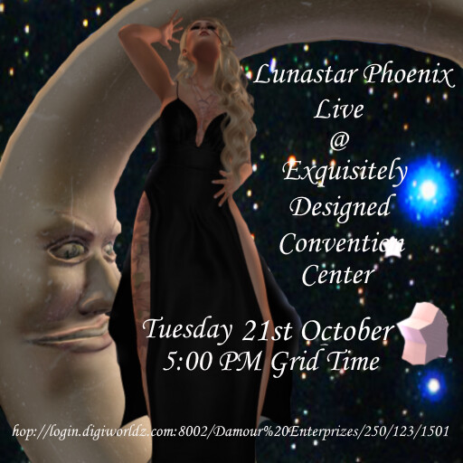 She will be singing from her Ballroom List of music. The performance is listed on the opensimfest calendar! We will have a spooktacular time! We have the ballroom set up for the Halloween Holiday, so come in Costume or Dress in Formal or Semi Formal