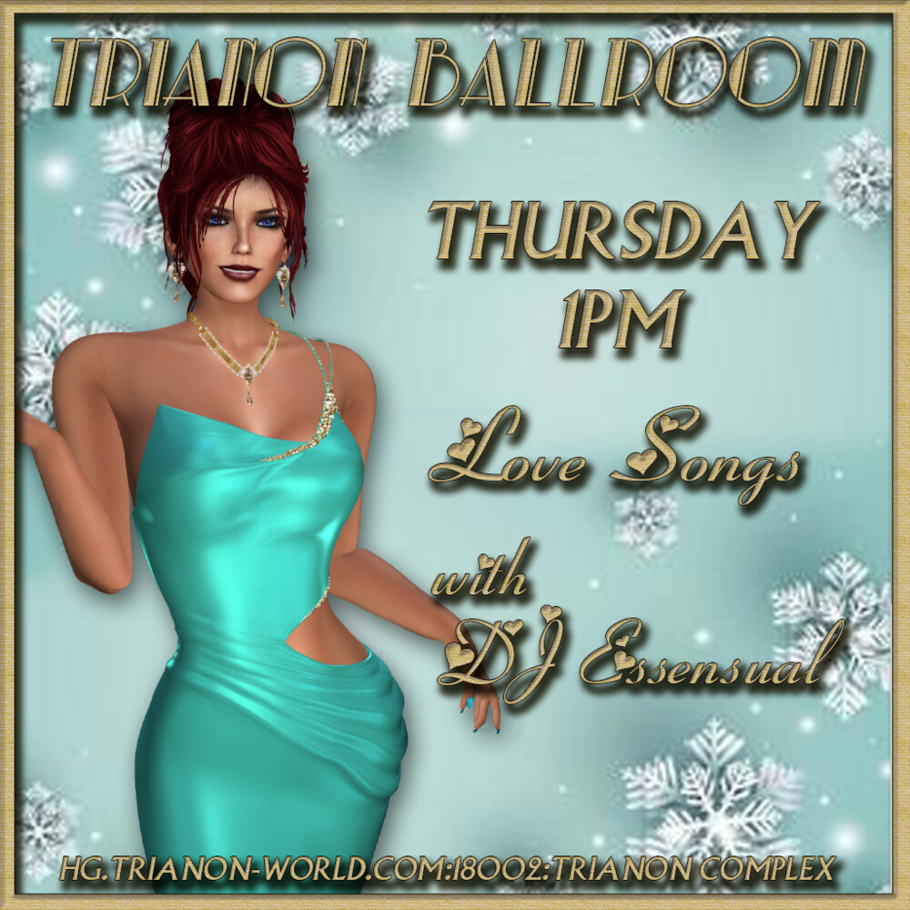 Do you love to dance to soft music, and chat with a group of friendly people or with your partner? If yes, then Trianon's Ballroom is the perfect place for you to be on Thursdays at 1:00 pm PST. The talented DJ Essensual will at 1pm playing the best love songs and your requests. Trianon offers a unique dance ball that provides a magical escape into another era, an experience found nowhere else. Dress code formal venue, hg.trianon-world.com:18002:Trianon Complex