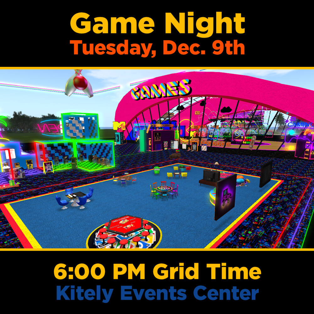 Join us on Tues. December 9th, at 6 PM Grid Time for an evening of fun and friendly competition. Play Greedy, Parcheesi, Yahtzee, Uno, Simon, chess, checkers, arcade games, bowling, bingo, and more. Bring friends or meet new ones—there’s a game for everyone.
