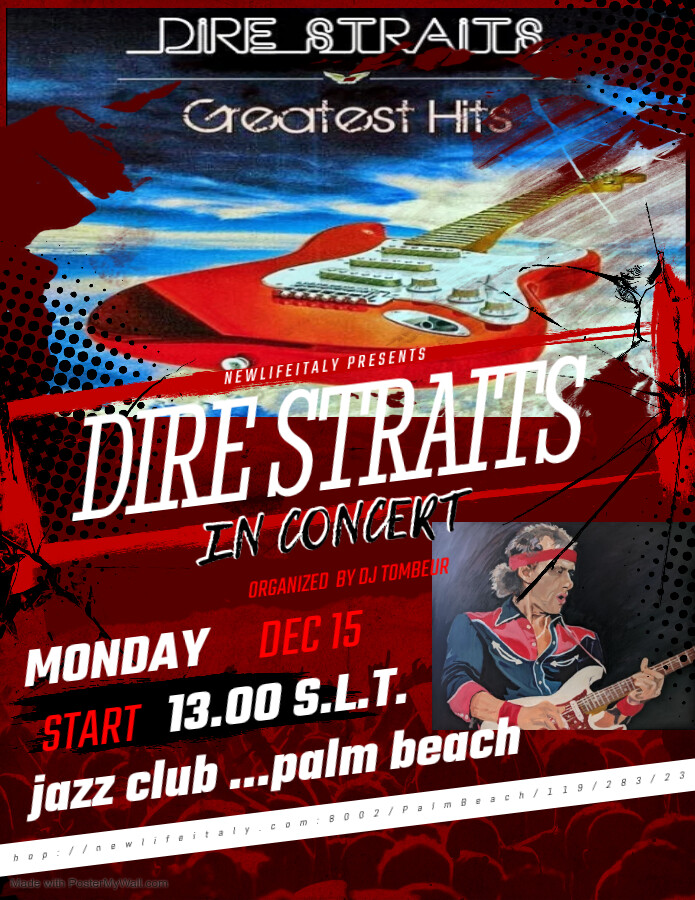 IN THE MAGICAL ATMOSPHERE OF THE PALM BEACH JAZZ CLUB, A GREAT EVENING OF ROCK MUSIC, DEDICATED TO THE DIRE STRAITS AND ESPECIALLY ITS LEADER MARK KNOPFLER... WE LOOK FORWARD TO SEEING YOU THERE!!!!!!!!!