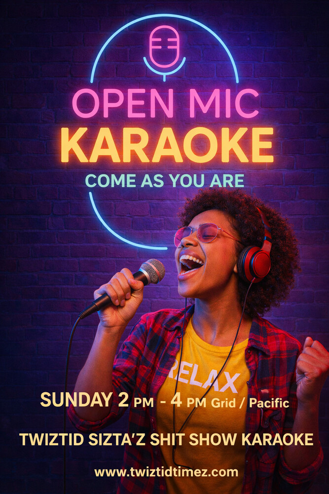 Open Mic Today at Twiztid Sizta'z Shit Show Karaoke located in the Region of Wicked Waves, Twiztid Timez Grid.