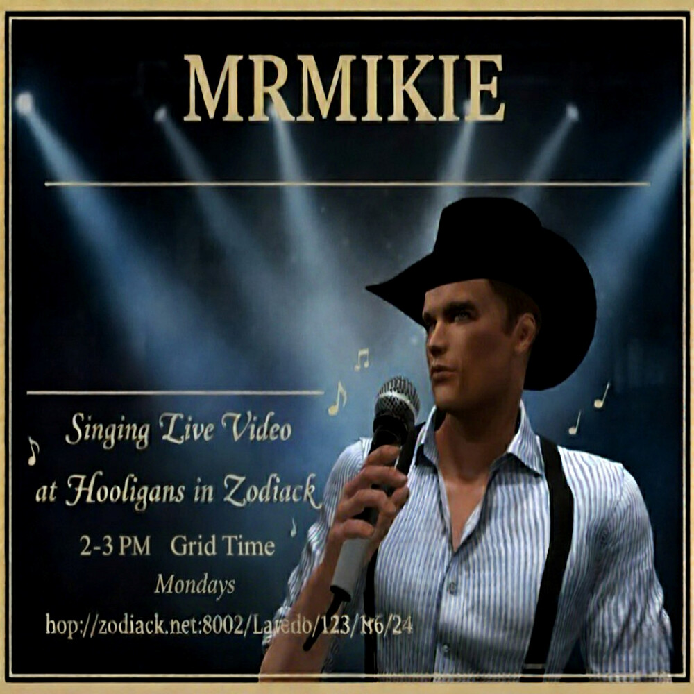 MrMikie brings his smooth as silk singing voice to opensim and has been singing in OpenSim for many years. MrMikie is a sultry crooner of Country new & Old / Golden Oldies/ Jazz / Lounge / Love Songs & Ballads. A must hear voice, that some say they can listen to all day or night.