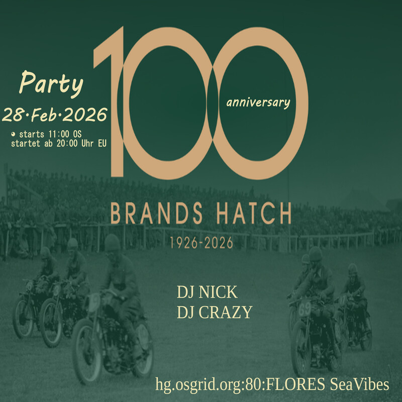 100 Years Brands Hatch Partyin 21 hours | 2026-02-28 12:00 SLT | FLORES SeaVibes | Added by Crazyposeidon▁ ▂ ▃ ▄ ▅ ▆ ▇ 100 Years Brands Hatch Party ▇ ▆ ▅ ▄ ▃ ▂ ▁
