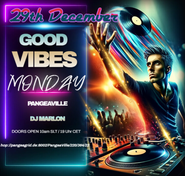 Good Vibesin 6 days | 2025-12-29 10:00 SLT | PangeaVille | Added by AdrianaDarkheart0 comments |