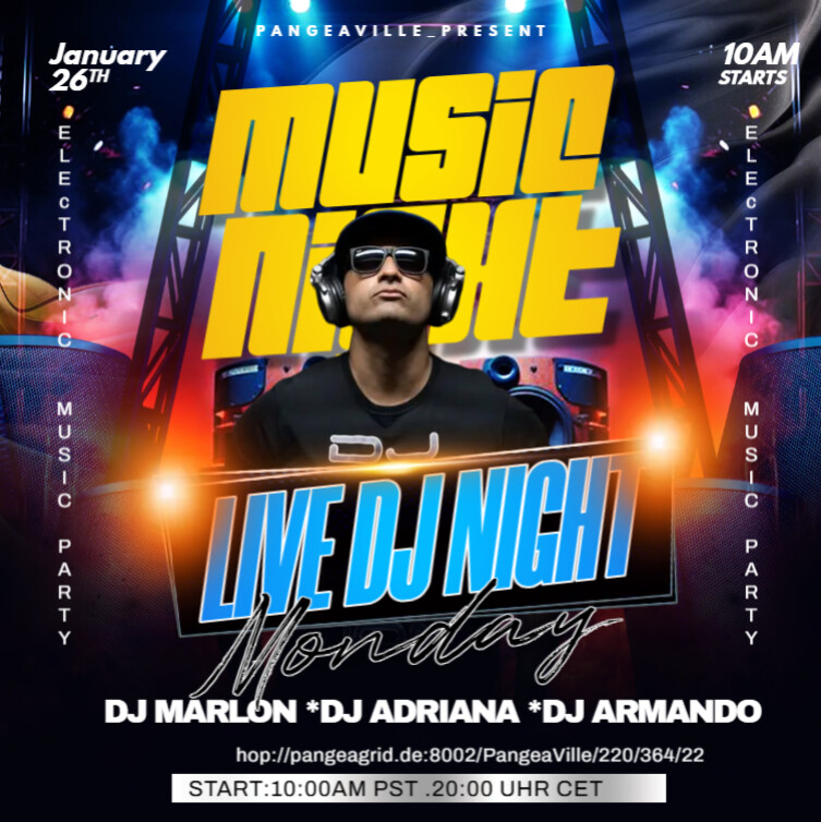FIRST FESTIVAL EVENT 2026 @ PANGEAVILLEin 9 days | 2026-01-26 10:00 SLT | PangeaVille | Added by AdrianaDarkheartDJ Marlon wird electronic und techno music auflegen
