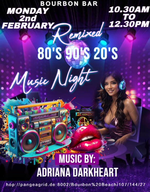 80's 90's 20'sin 9 days | 2026-02-02 10:30 SLT | Bourbon Beach | Added by AdrianaDarkheart0 comments |