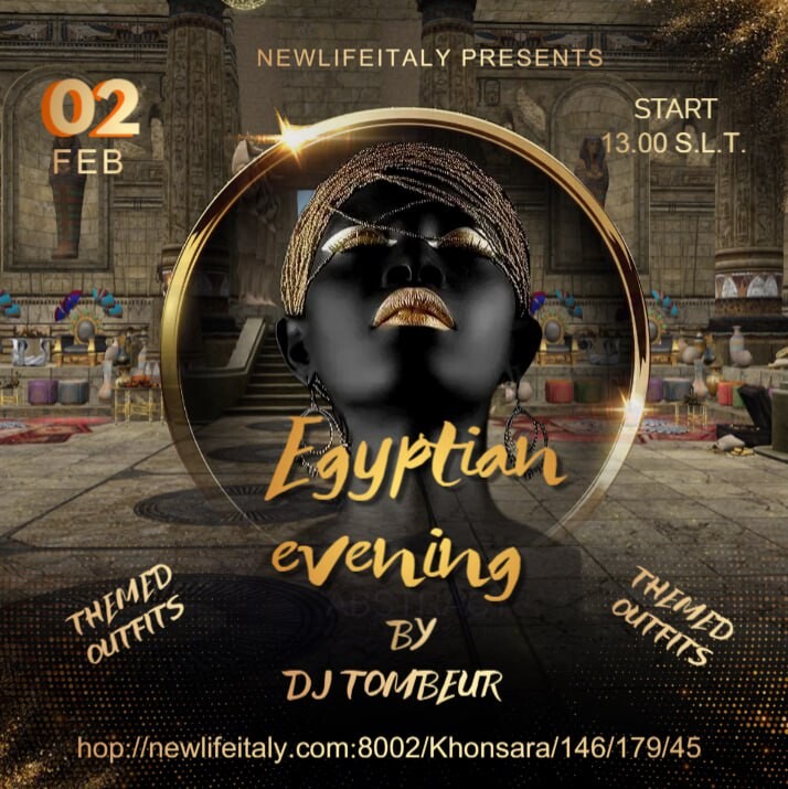 EGYPTIAN EVENINGin 15 hours | 2026-02-02 13:00 SLT | Khonsara | Added by LunaNeraDON'T MISS THE GREAT EGYPTIAN NIGHT WITH DJ TOMBERUR, THEMED ATTIRE REQUIRED NON MANCATE ALLA GRANDE SERATA EGIZIANA CON IL DJ TOMBERUR ABITO A TEMA متفوتوش الأمسية الكبيرة المصرية مع الدي جي تومبيرور وارتدوا لبس على حسب الموضوع