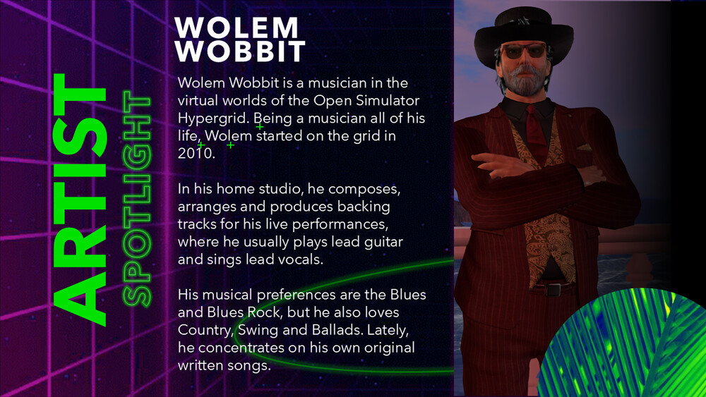 OSCC25 Live Music with Wolem Wobbitin 23 hours | 2025-12-05 13:00 SLT | OSCC Music Stage | Added by AvaCon Inc.✦✔Being a musician all of his life, Wolem started on the grid in 2010.