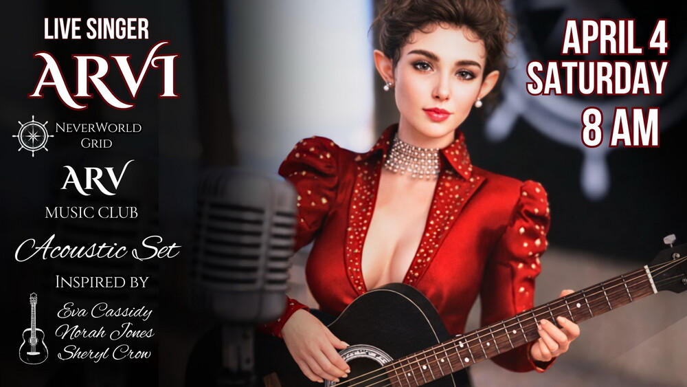 ♫ Inspired by Eva Cassidy, Norah Jones, and Sheryl Crow ♥ Music that feels like home, like memory, like quiet magic. ♫ Warm melodies, gentle rhythms, and heartfelt stories ♪ 1 Hour Live Set ✿ Where : hg.neverworldgrid.com:8002:ARV Music Club ✿ When: 8 AM ♪ Attire: Casual ♪ Soulful, warm, and emotional ♪ Close, personal atmosphere Sit back, breathe, and let the music speak. ♫ Stay in the moment ♫ ♫ Let music carry you ♫ 0 comments |