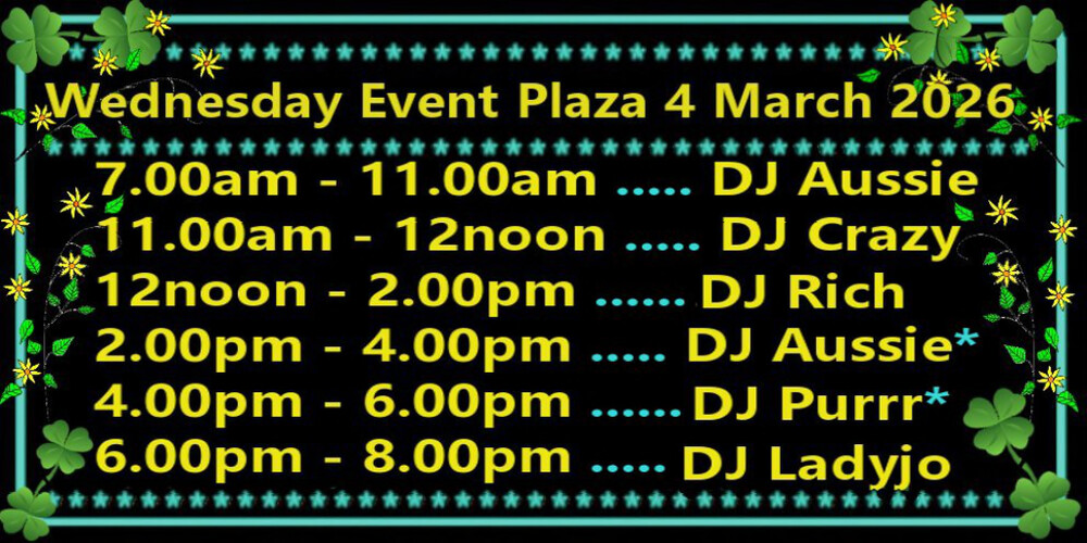 Wednesday Event Plaza Osgridin 2 days | 2026-03-04 20:00 SLT | Event Plaza | Added by OSgrid.org✦0 comments |