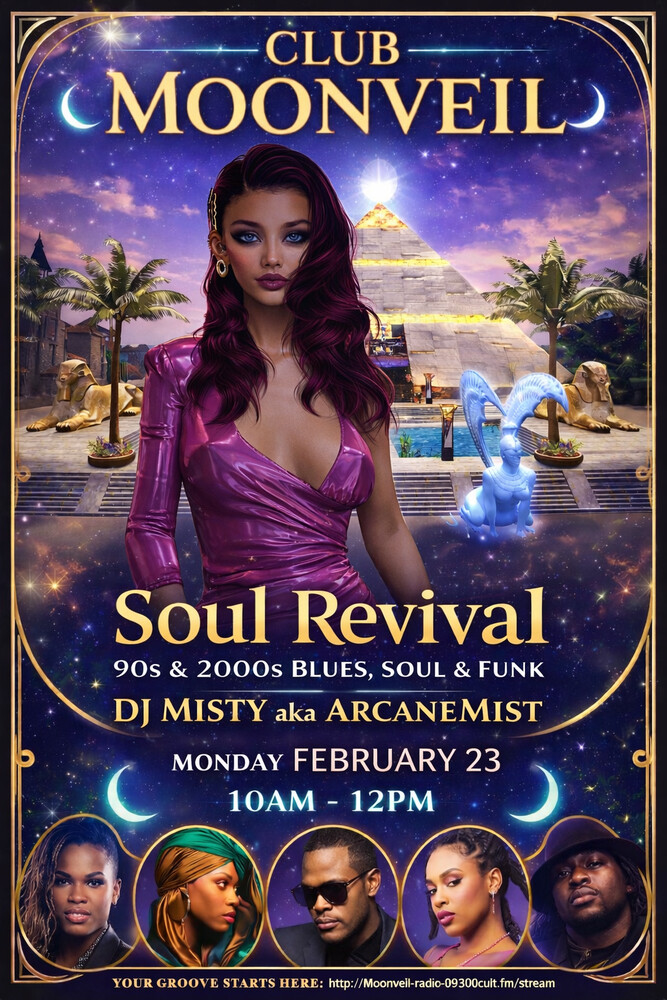Soul Revival – 90s & 2000s Blues, Soul & Funk ? When: Monday, February 23 · 10 AM – 12 PM (OSgrid Time) ? Where: Club Moonveil ? Tune in live: https://moonveil-radio-90f39c4d.radiocult.fm/stream ? Hosted By: ArcaneMist aka Misty ? Vibe: Step into the groove of the late 90s and early 2000s a soulful mix of modern blues, neo-soul, and smooth funk from icons like Erykah Badu, D'Angelo, Maxwell, and Alicia Keys. Let the rhythm move you beneath the golden lights of Club Moonveil where soul and 0 comments |
