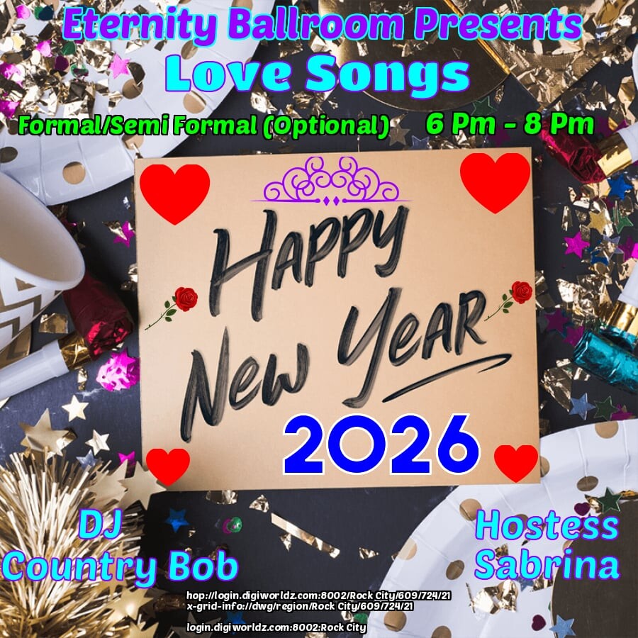 DJ Country Bob and Hostess Sabrina at the Eternity BALLROOM Venue! NEW YEARS DAY PARTY!in 3 days | 2026-01-01 18:00 SLT | Rock City | Added by Trynatie Mason*6-8PM OST Grid Time! - Ready For Some Fun? Join Us! - THEME: Formal/Semi Formal - Music: Love Songs - *GUARANTEED A GOOD TIME, CYA THERE!