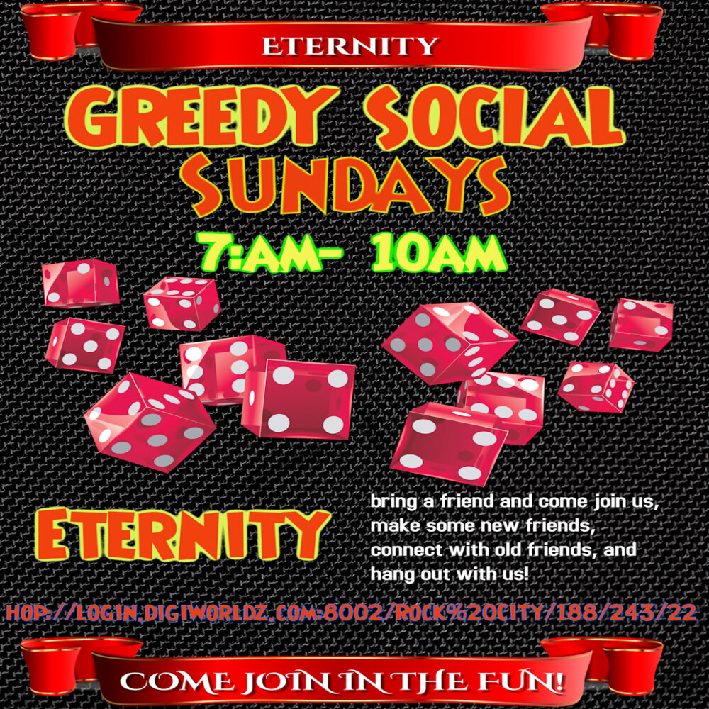 Sunday Morning Greedy Social at the Eternity Coffee Shopin 5 days | 2026-01-04 07:00 SLT | Rock City | Added by Trynatie MasonGreedy/Coffee Social - Voice Chat enabled! - WHAT: Free Coffee, Donuts & Hot Coco - WHEN: 7:00am OST/ 10:00am OST Grid Time
