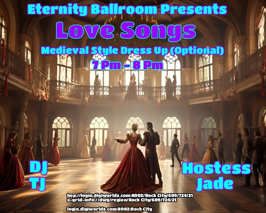 DJ TJ Mason & Hostess Jade Soraya at the Eternity Night Club - BALLROOM Venue!in 6 days | 2026-02-25 19:00 SLT | Rock City | Added by Trynatie Mason*7-8PM OST Grid Time* - *Ready For Some Fun? Join Us! - THEME: Medival Style Dress up - MUSIC: Love Songs - Raffle by 2 Hour Rafffle by Concepts Mesh & More - HG Friendly! *GUARANTEED A GOOD TIME, CYA THERE!