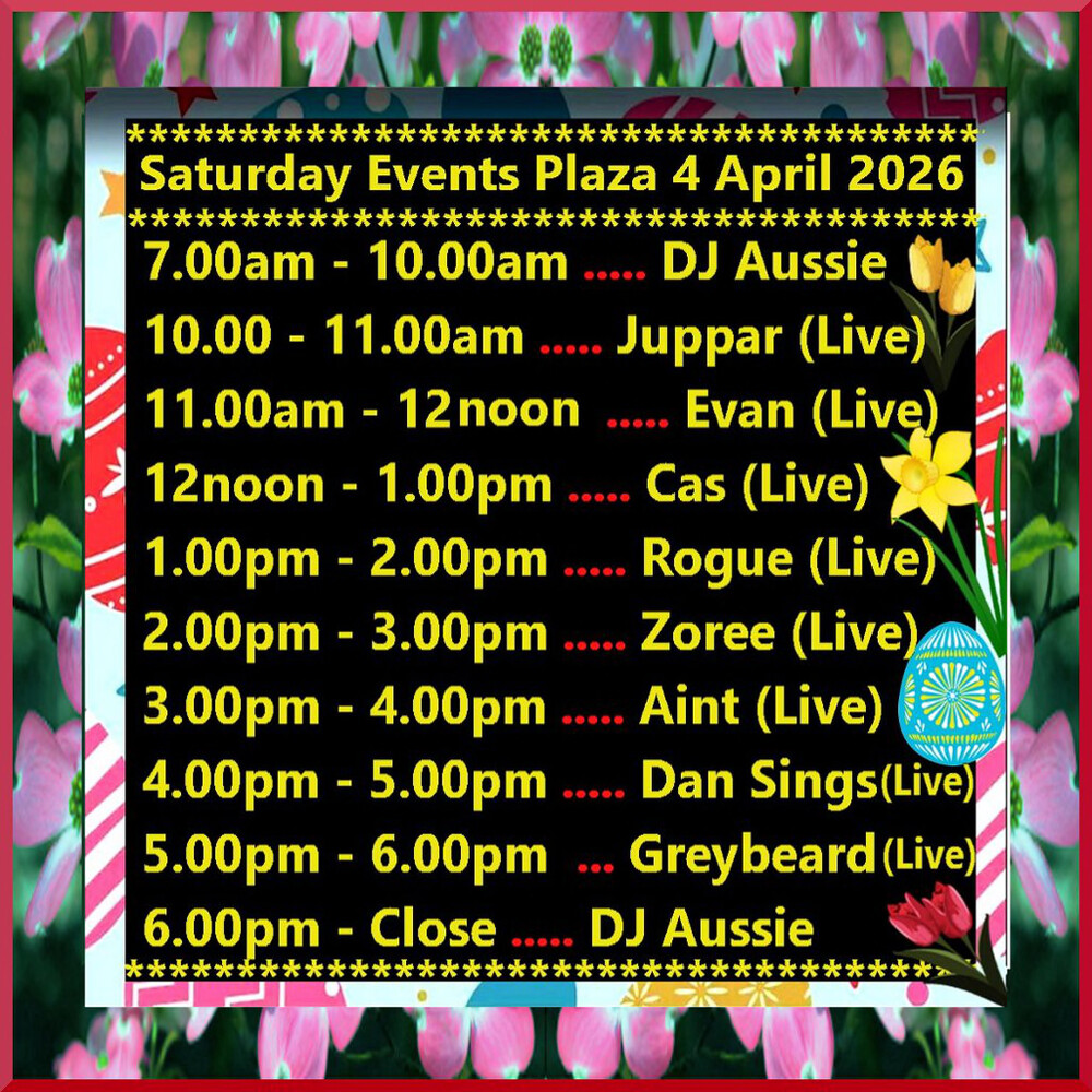 Saturday Event Plaza Osgridin 2 days | 2026-04-04 08:00 SLT | Event Plaza | Added by OSgrid.orgLive Singers and DJ's