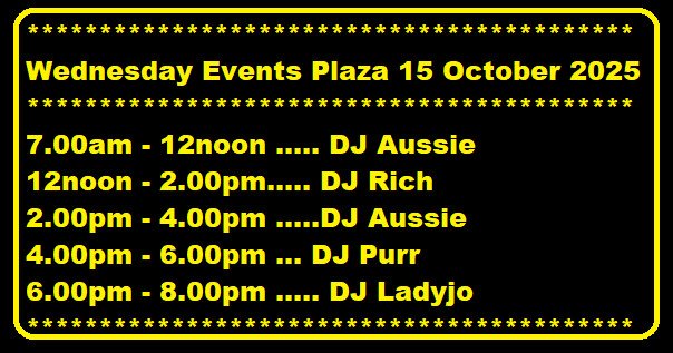 Wednesday Event Plaza OsgridEvent Plaza in 16 hours | 2025-10-15 12:00 SLT0 0 |