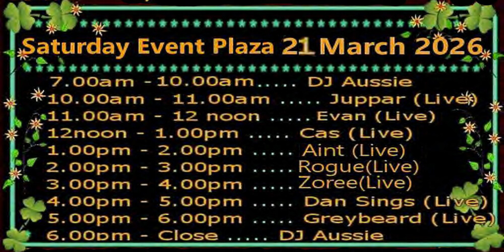 Wednesday Event Plaza OsgridEvent Plaza yesterday | 2026-03-18 21:00 SLTSt Pats Day