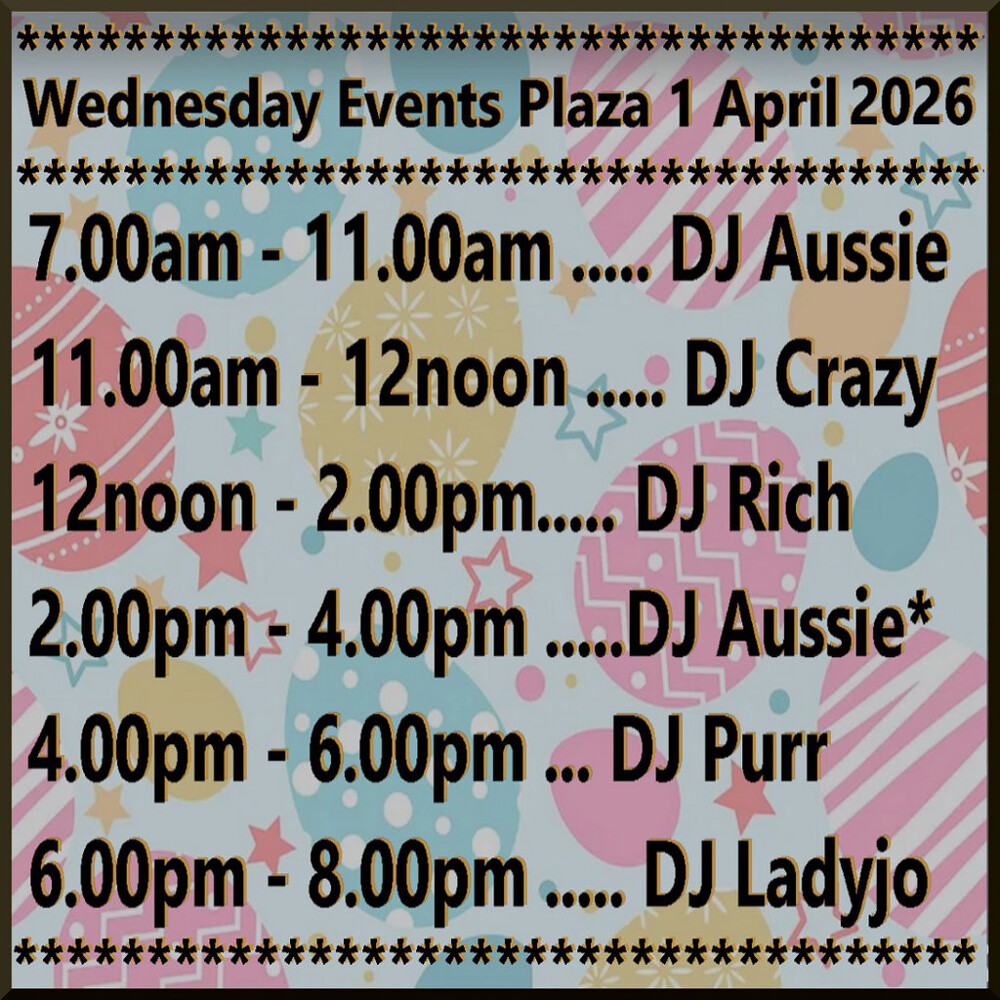Wednesday Event Plaza OsgridEvent Plaza in 1 days | 2026-04-01 21:00 SLT0 0 |