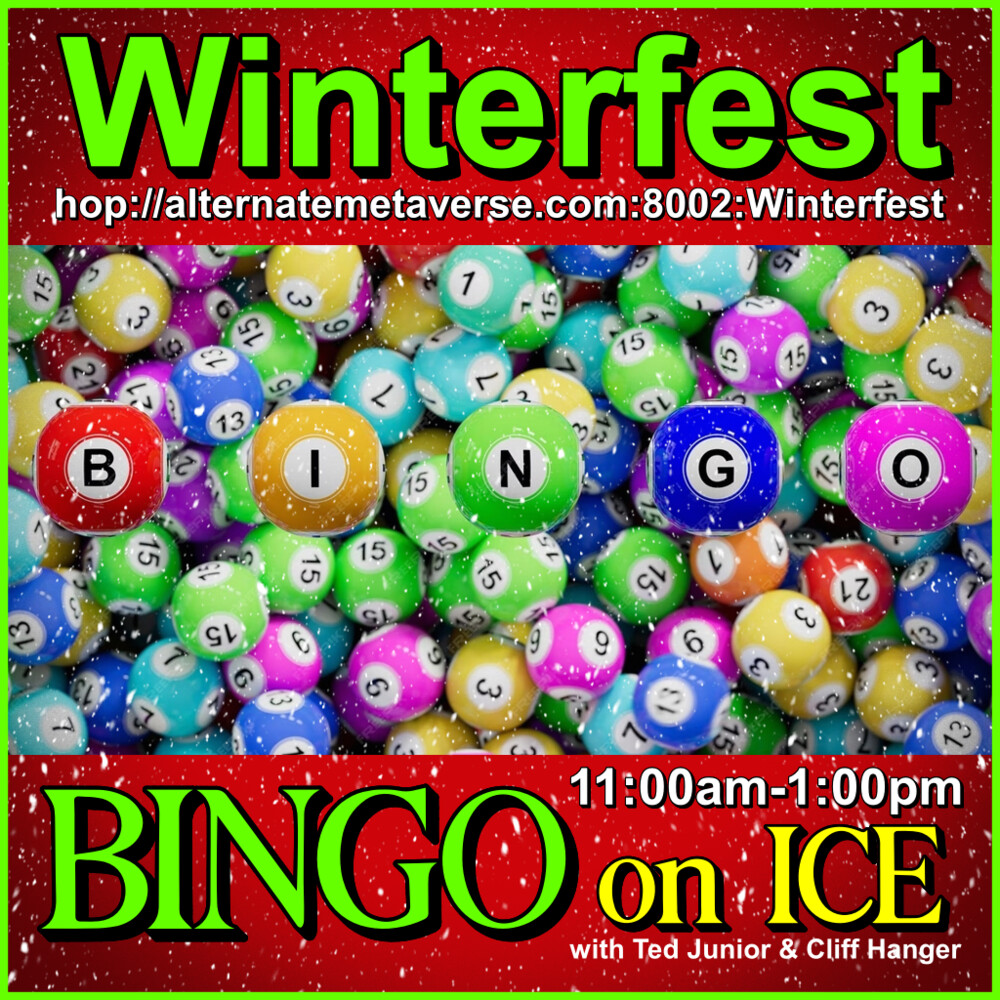 Settle down for an extended game of greedy, go for a skate or try ice fishing, lots to do here at 12noon DJ Ted takes over the stream, but greedy continues! hop://alternatemetaverse.com:8002/WinterFest/512/508/24 0 0 |
