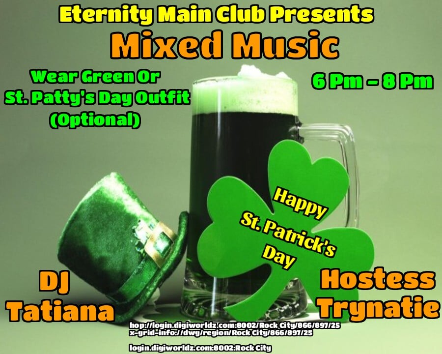 DJ Tatiana Volare and Hostess Trynatie Mason at the Eternity MAIN Venue! SAINT PATTY PARTY!Rock City in 4 days | 2026-03-17 18:00 SLT6-8PM OST Grid Time - *Ready For Some Fun? Join Us! - THEME: Saint Patty Dy Outfits or Green - MUSIC: Mixed - RAFFLE: by River Island Fashions, HG FRIENDLY! *GUARANTEED A GOOD TIME, CYA THERE!