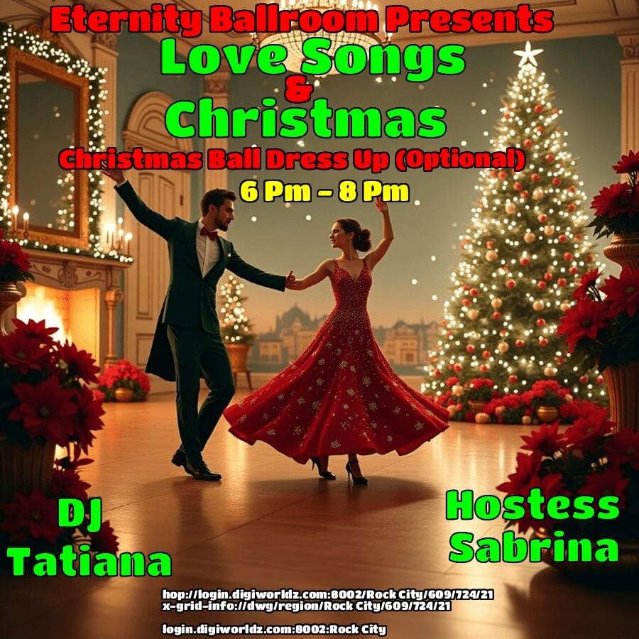 Ready For Good Time ? Needing That Brake To Refresh Those Creative Juices ? *Then Eternity Night Club Ballroom Is The Spot For You ! With DJ Garrett and Hostess Sibbie ! Music:semi-formal / formal event, featuring soft rock, easy listening and love songs ! *COME JOIN US FOR LOADS OF FUN AND LAUGHTER. MEET NEW FRIENDS AND CATCH UP WITH OLD ONES, TOO. CYA There! *RAFFLE Is By Run Free Fashion A 500 D Shopping Voucher To One Lucky Winner! HG FRIENDLY