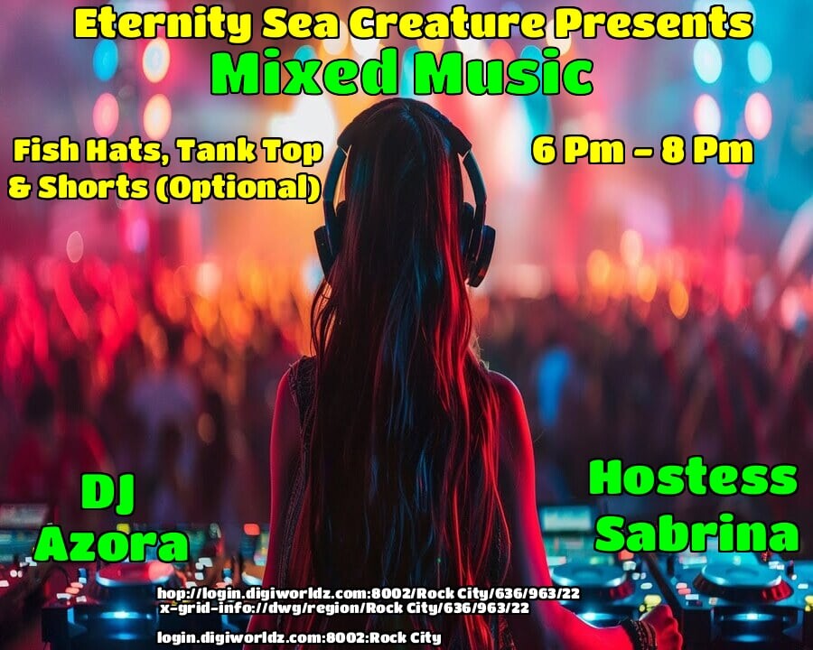 Eternity Night Club Is Located in DIGIWORLDZ (GUARANTED A GOOD TIME) 13 Venues We Rotate around for events, we are Open Monday - Friday 6-8PM OST, Eternity Has the Best LIVE Performers, DJs & Hostess's in Opensim, always something different, come see Us :) There Is More Here to explore for Hours, Greedy Every Sunday 7am-10am, Come Look Around Bring Up The Map And LOOK at all there is to see.