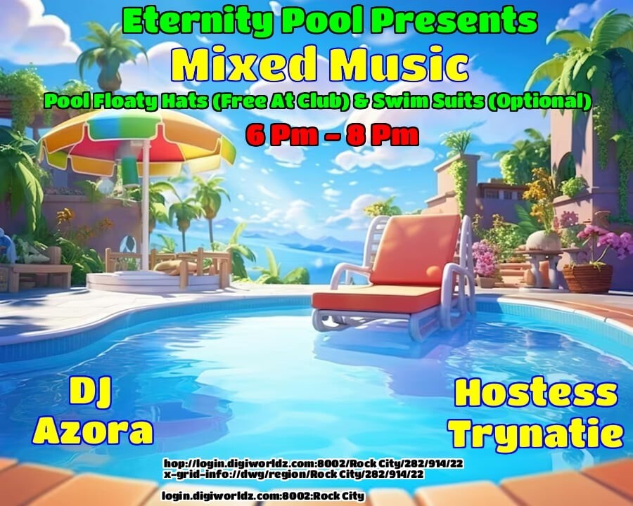 Ready For A Good Time ? Needing That Break To Refresh your Creative Juices ? *DJ Tatiana and Hostie Erdette 6-8PM - MUSIC: American Band Stand 1989 , It All Happens Right Here At Eternity Night Club - BEACH - DRESS UP: BEACH WEAR, ALWAYS OPTIONAL! *COME JOIN US FOR LOADS OF FUN AND LAUGHTER. MEET NEW FRIENDS AND CATCH UP WITH OLD ONES, TOO. CYA There! *RAFFLE Is By Perrys Builds Sponsor Perry Mason A Boat Dock To One Lucky Winner! HG Friendly !