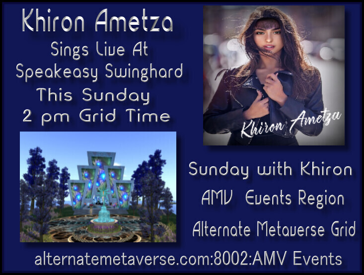 Spend Sunday afternoon @Alternate Metaverse! Join us at AMV Events on Sunday, July 24th and become enchanted by KHIRON AMETZA, a seasoned performer who has been singing in virtual worlds for a dozen years! Khiron is Fun & Friendly and WOW what a voice! Her provocative singing is the result of a lifetime of professional musicianship in her real world in Brazil. Contemporary Ballads, 70's & 80's, 90's, 00's, Rock, Disco, and more. You'll recognize famous covers and fun danceable tunes!