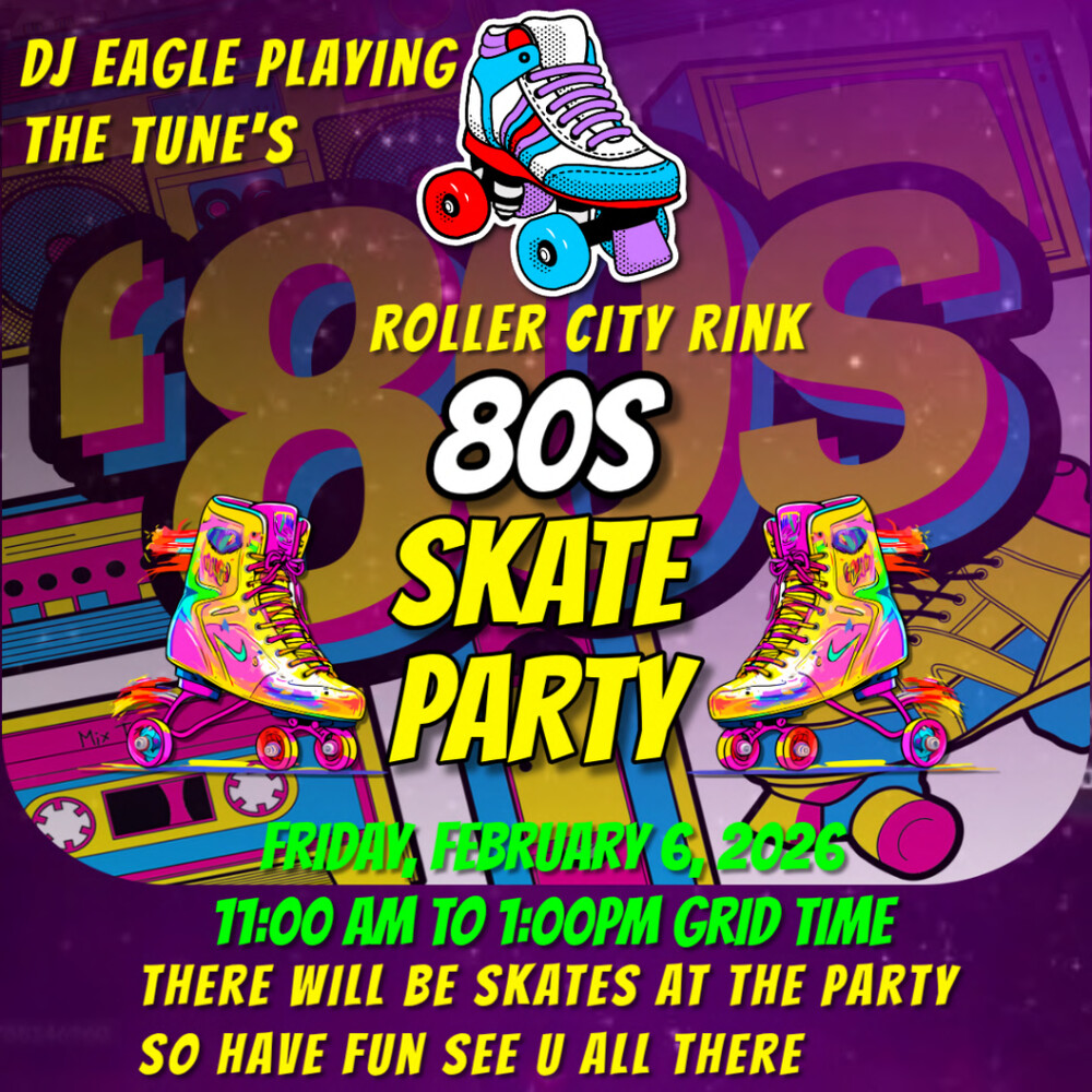 Dj EagleGentle Fire Grid in 26 minutes | 2026-02-06 11:00 SLT Slide into the fun at the Skating Rink! Lace up, roll out, and groove to the beats of D.J. Eagle spinning the best 80s music. Come skate, laugh, and vibe with us—good times guaranteed.