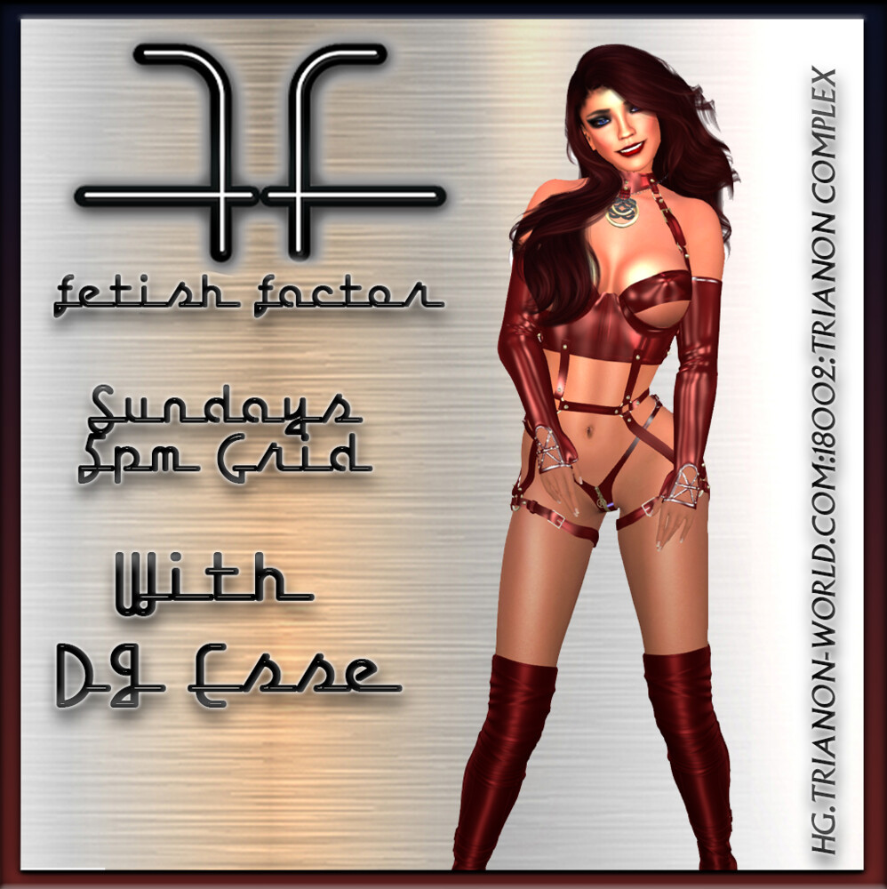 Fetish Factor 5pm with DJ EsseTrianon Complex in 2 days | 2026-03-15 17:00 SLTIndulge your wild side with Fetish Factor with DJ Esse, an intoxicating audio journey into the forbidden pleasures of latex and leather. This provocative production will immerse you in the thrilling underground world where your most secret desires come alive. Let DJ Esse be your guide on a Rock adventure. Discover new levels of excitement and satisfaction as you step through the looking glass into a realm where your deepest desires are fulfilled.hg.trianon-world.com:18002:Trianon Complex