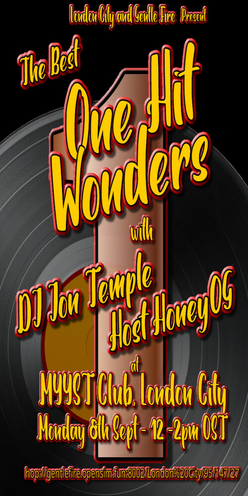 MYYST CLUB DJ JON ᴡʜᴇɴ: MONDAY @ 12 PM GT ᴀᴛᴛɪʀᴇ: CASUAL ʜᴏꜱᴛ HONEYOG ONE HIT WONDERS CALLING ALL HERE IS YOUR LIMO hop://gentlefire.opensim.fun:8002/London City/102/149/27 ✰♡✩✰♡✩✰♡✩✰♡✩✰♡✩✰♡✩✰ 0 0 |