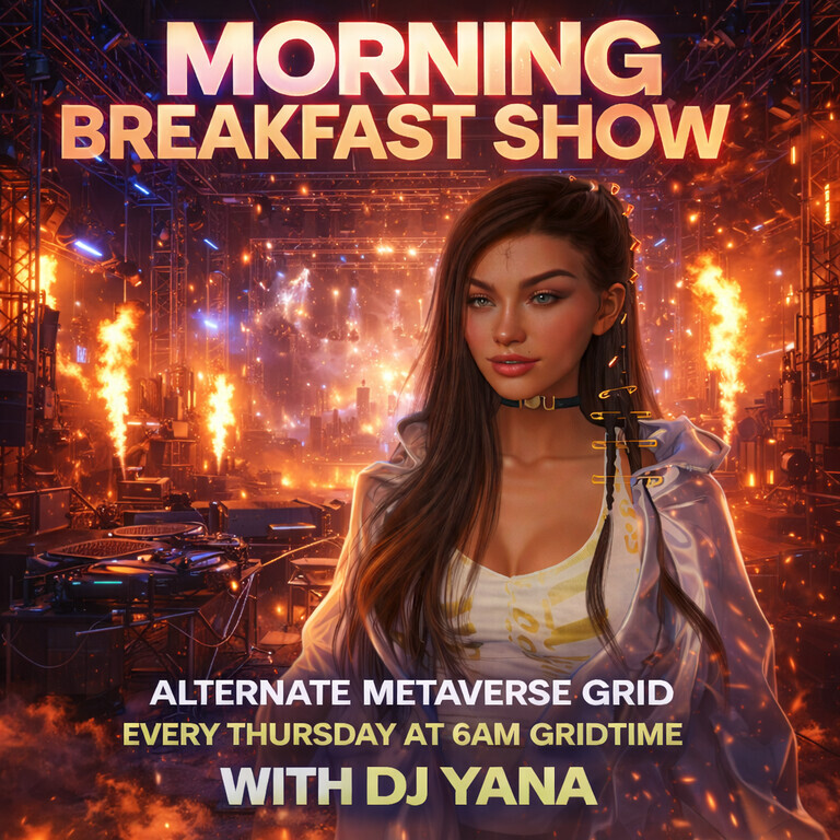 DJ YANA @ THE EARLY MORNING BREAKFAST SHOWAlternate Metaverse in 17 days | 2026-04-16 06:00 SLTJoin us for an unforgettable session at the New Landing Point in Alternate Metaverse Grid!