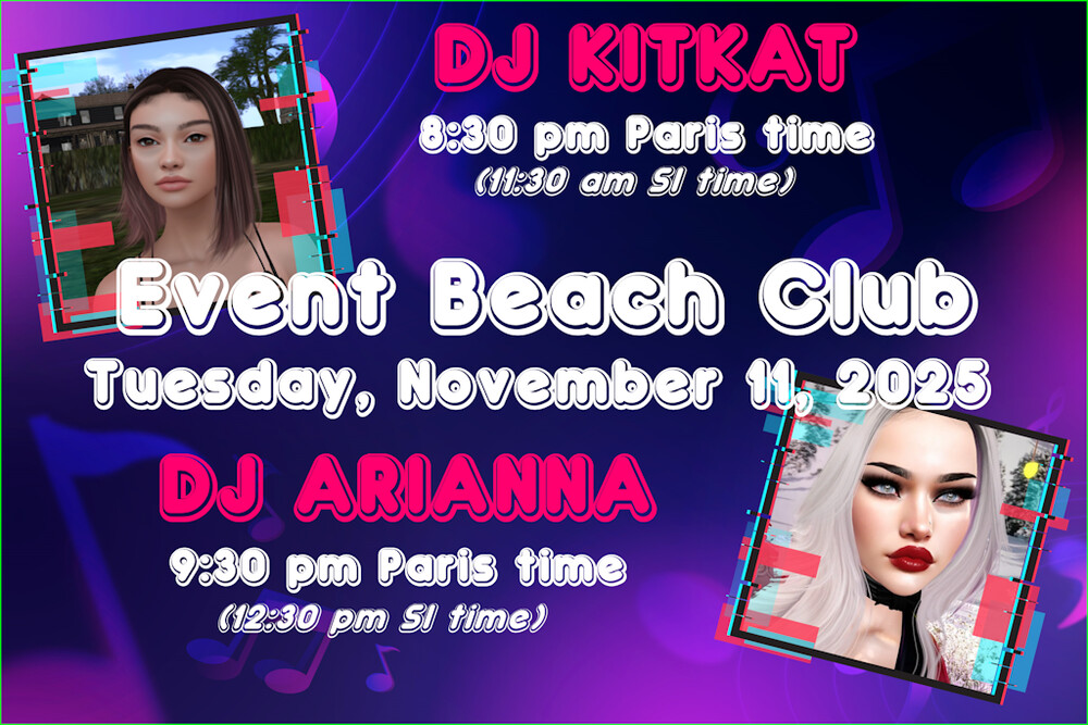 DJ ARIANNA 9:30 pm Paris time (12:30 pm Sl time)