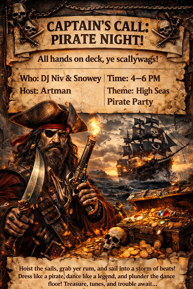 ![]() CAPTAIN’S CALL: PIRATE NIGHT!