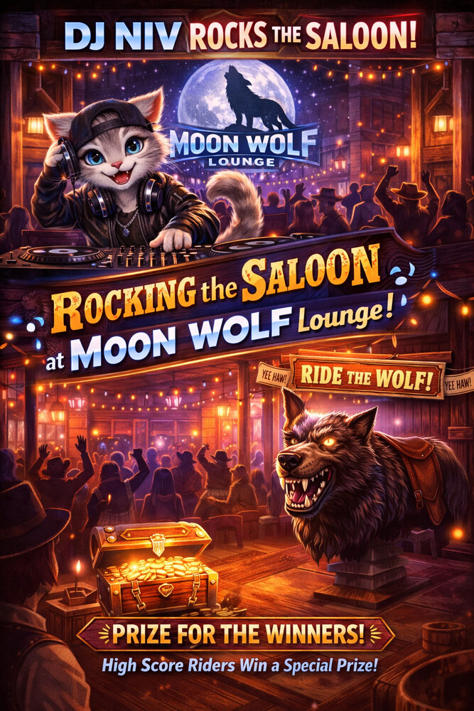 ![]() Rocking the Moon Wolf Saloon with DJ Niv 4-6pm ost!!