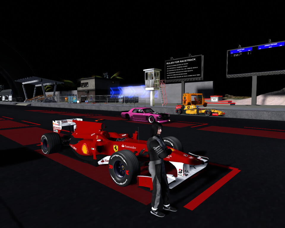 It's a wide track and doesn't present many problems with standard scripts, which have to use the BulletSim physics engine. It has a good layout for the transition between sectors (something that does happen on some other tracks) and the corners are very easy to navigate, although it might be nice if some of them had a bit of banking. There's no noticeable lag in the sim either, so it's a blast to race there... The races Chris McCracken organizes are run with race control, usually a practice lap followed by a multi-lap race... and well, he always beats me (although I know he's let me win sometimes)... another common participant is Cliff... but that's another story (it's a joke, Cliff)