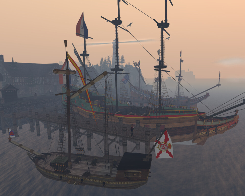 That's how I got the one in the picture, although now, after being captured, instead of the East India Company flag, it flies my battle flag of Spanish Empire privateer. It also has a broomstick on the mainmast because in one of today's battles I wipped the enemies and earned the right to fly it.